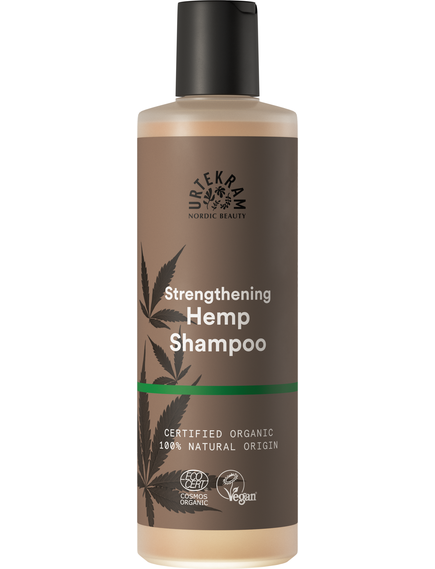 Зміцнюючий конопляний шампунь Urtekram зі спеціальною сумішшю функціоналізованої конопляної олії та зміцнюючого екстракту чіа, який допомагає зміцнити та живити сухе та пошкоджене волосся та надати йому красивого вигляду, зарядженого енергією, здорового та оновленого.