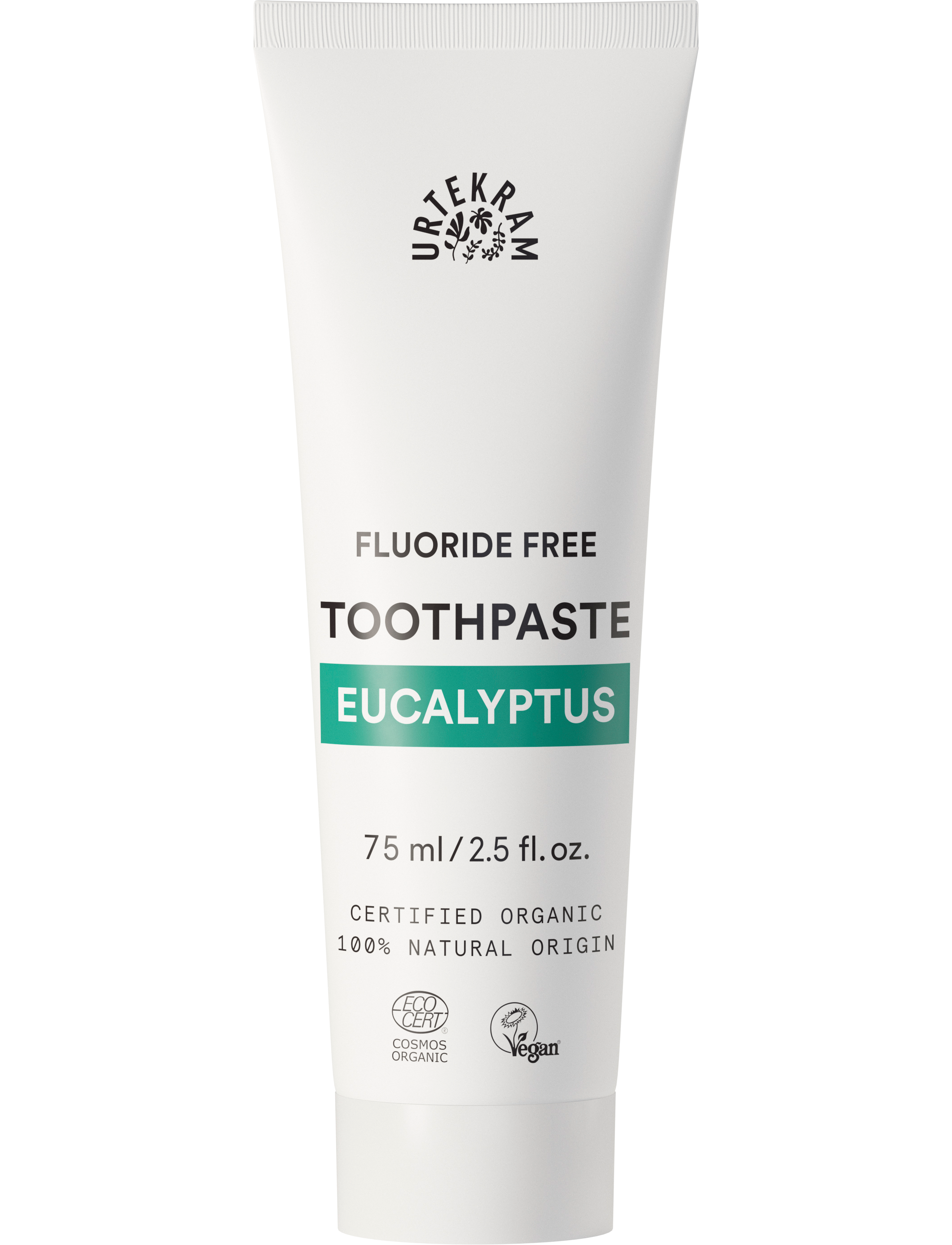 Зубна паста Urtekram Eucalyptus ефективно очищає з інгредієнтами 100% натурального походження та має інтенсивний та освіжаючий смак. Дрібні абразивні зерна походять від крейди, яка була створена мільйони років тому. Тому зубна паста Urtekram має натуральний, майже білий колір натуральної крейди. Наша зубна паста містить алое віра, мирру та екстракт кори магнолії, тому що це допомагає вашим яснам і забезпечує додатковий догляд. Сертифіковано Ecocert Cosmos Органічний, веганський і натурального походження.