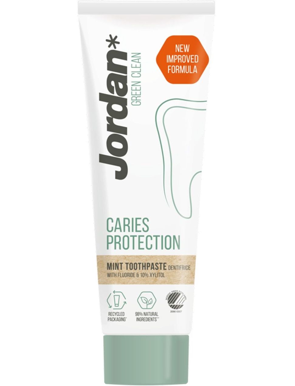 Зубна паста містить м’який піноутворювач, отриманий з кукурудзи, та отримала екологічний знак Nordic Swan Ecolabel як доказ зменшення впливу на навколишнє середовище та турботи про здоров’я споживачів.