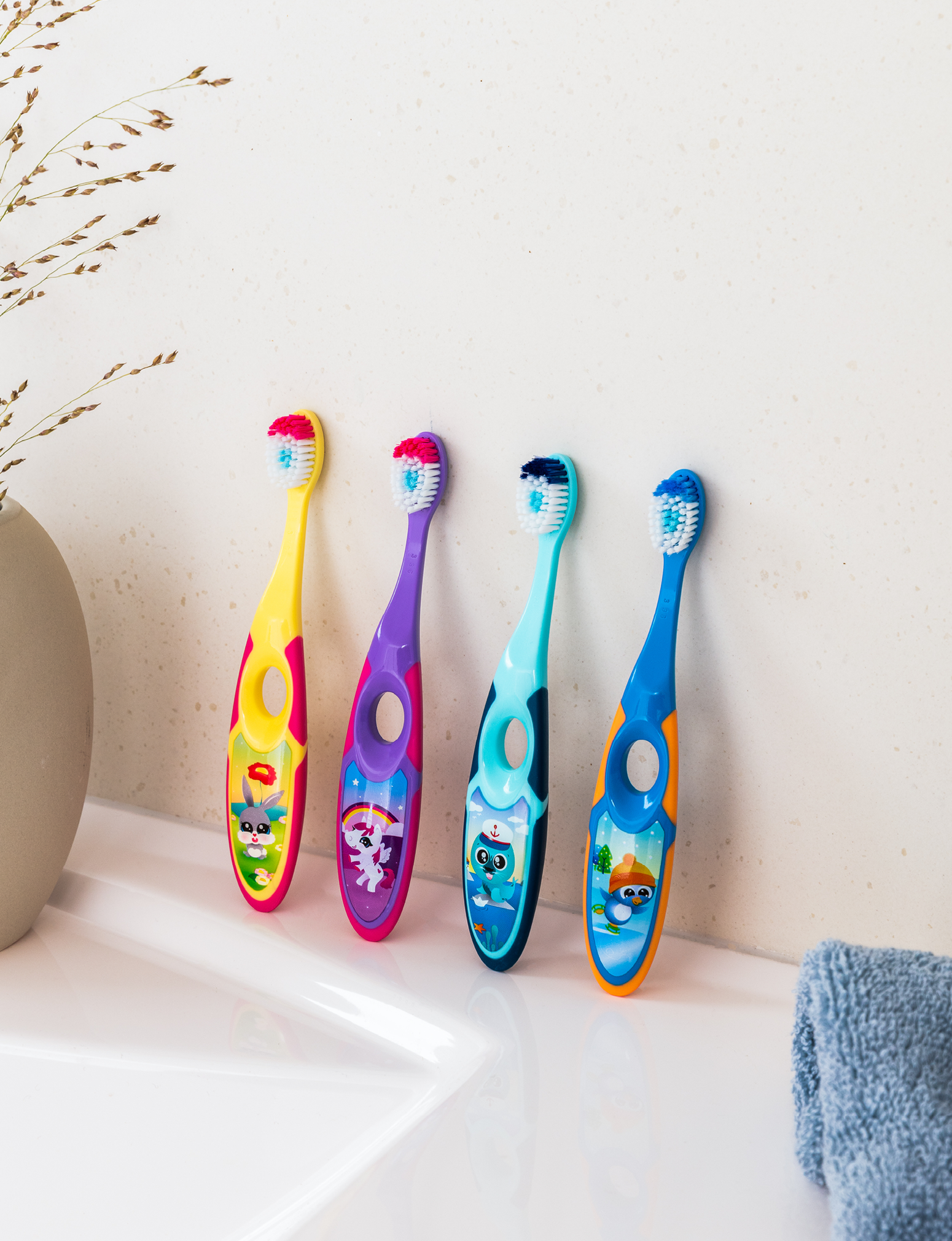 Ви також можете знайти цю дитячу зубну щітку з власним таймером. Пісочний годинник простий у використанні, він кріпиться до дзеркала у ванній кімнаті або плитки, а зубна щітка також поміщається в нього, що забезпечує гігієнічність зубної щітки між сеансами чищення зубів.