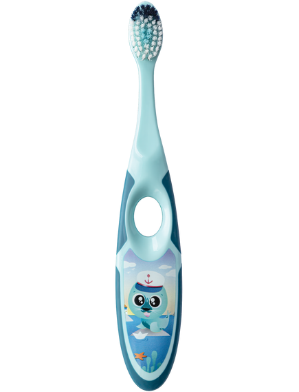 Дитяча зубна щітка Jordan Step 2 спеціально розроблена для чищення маленьких молочних зубів дітей. М’яка щетина, невелика, але широка головка та подвійна ручка для батьків та дітей полегшують чищення зубів. Блакитна щетина зубної щітки допоможе вам щоразу наносити потрібну кількість зубної пасти.