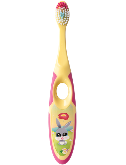 Ви також можете знайти цю дитячу зубну щітку з власним таймером. Пісочний годинник простий у використанні, він кріпиться до дзеркала у ванній кімнаті або плитки, а зубна щітка також поміщається в нього, що забезпечує гігієнічність зубної щітки між сеансами чищення зубів.