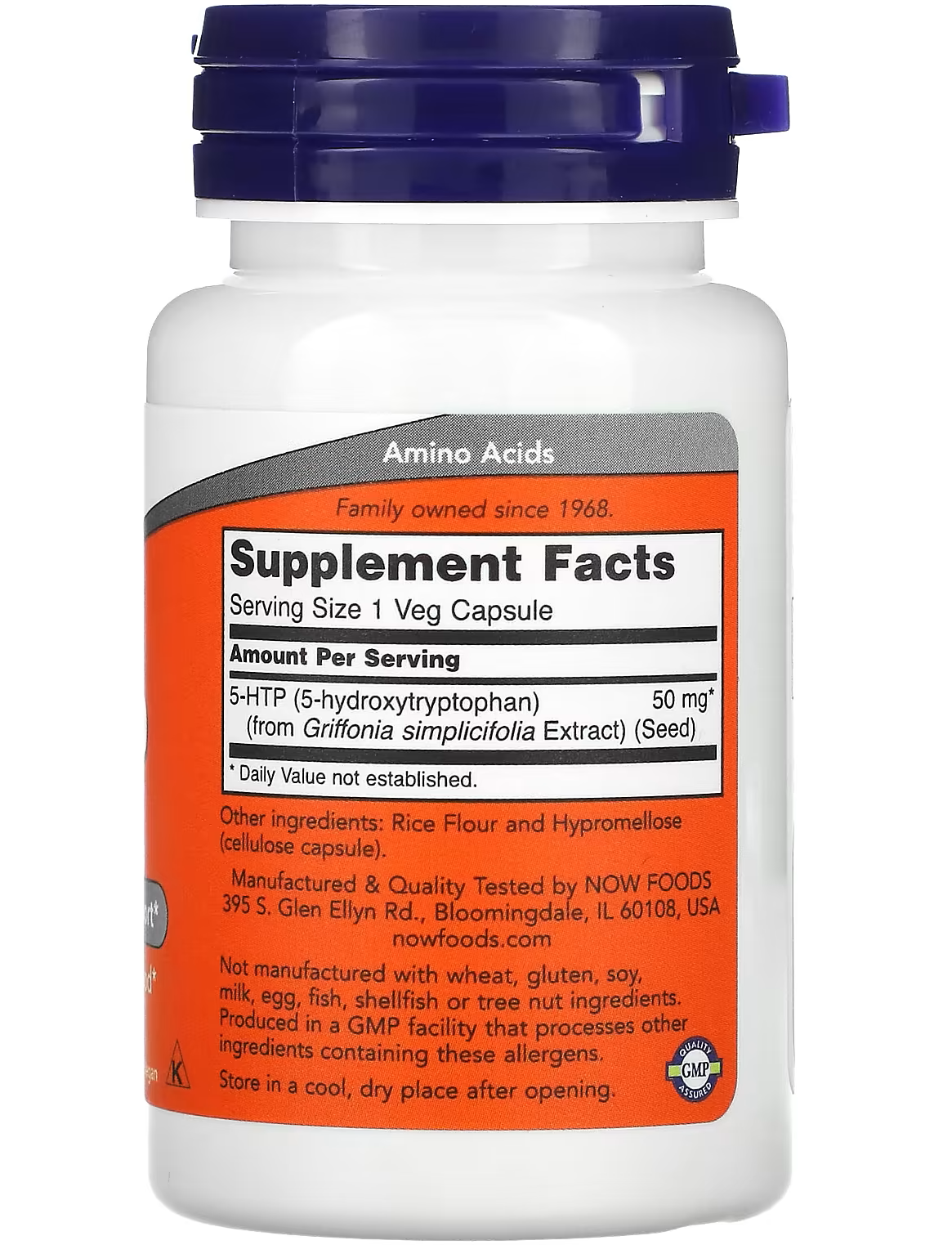 5-гідрокситриптофан Now Foods "5-HTP" - це харчова добавка, заснована на наукових розробках. 5-НТР (5-гідрокси L-тринтофан) - це натуральний метаболіт амінокислоти триптофан, який у головному мозку перетворюється на гормони серотоніну та дофаміну.