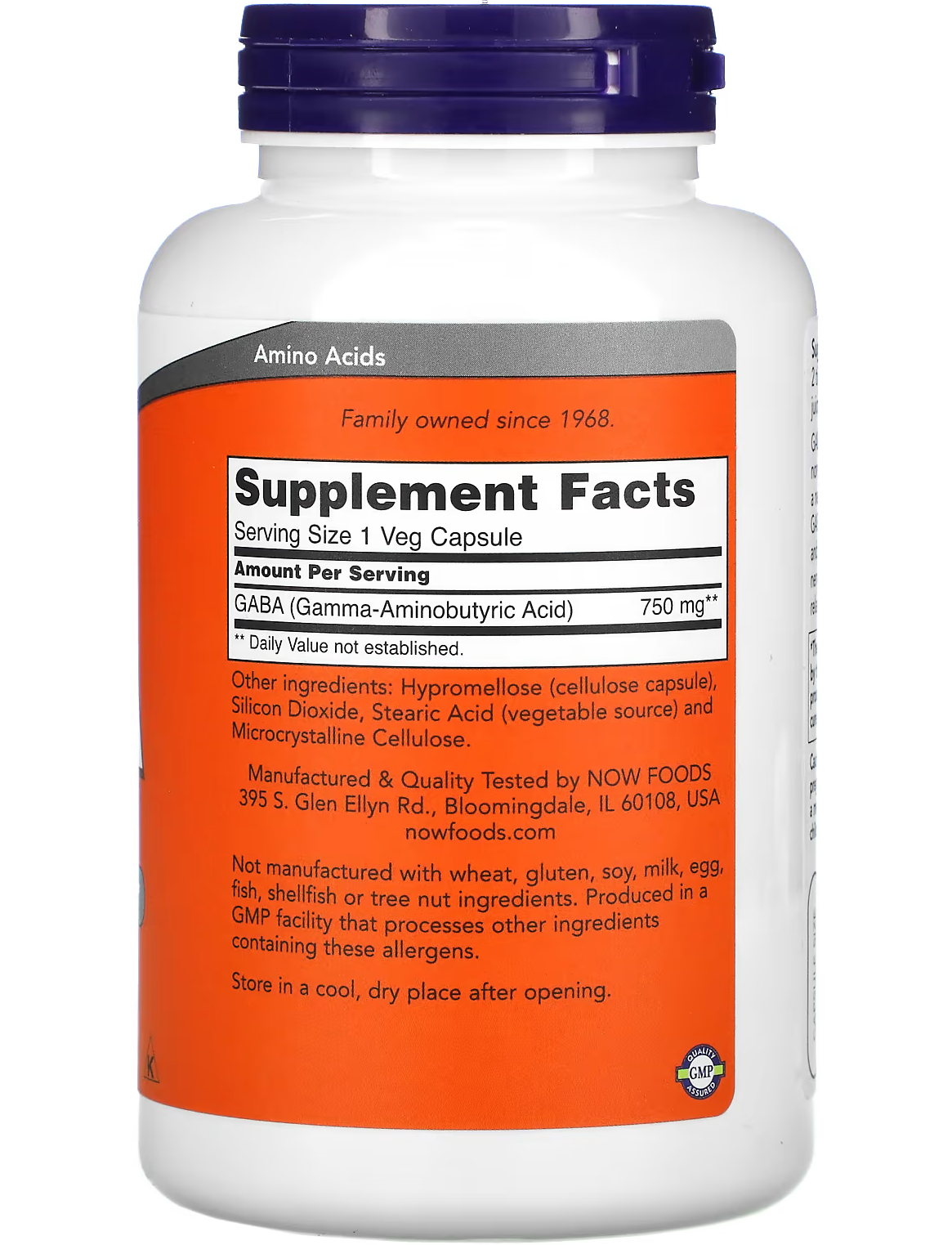 Харчова добавка. Дієтична добавка. GABA ГАМК 750 мг 200 веганських капсул.
