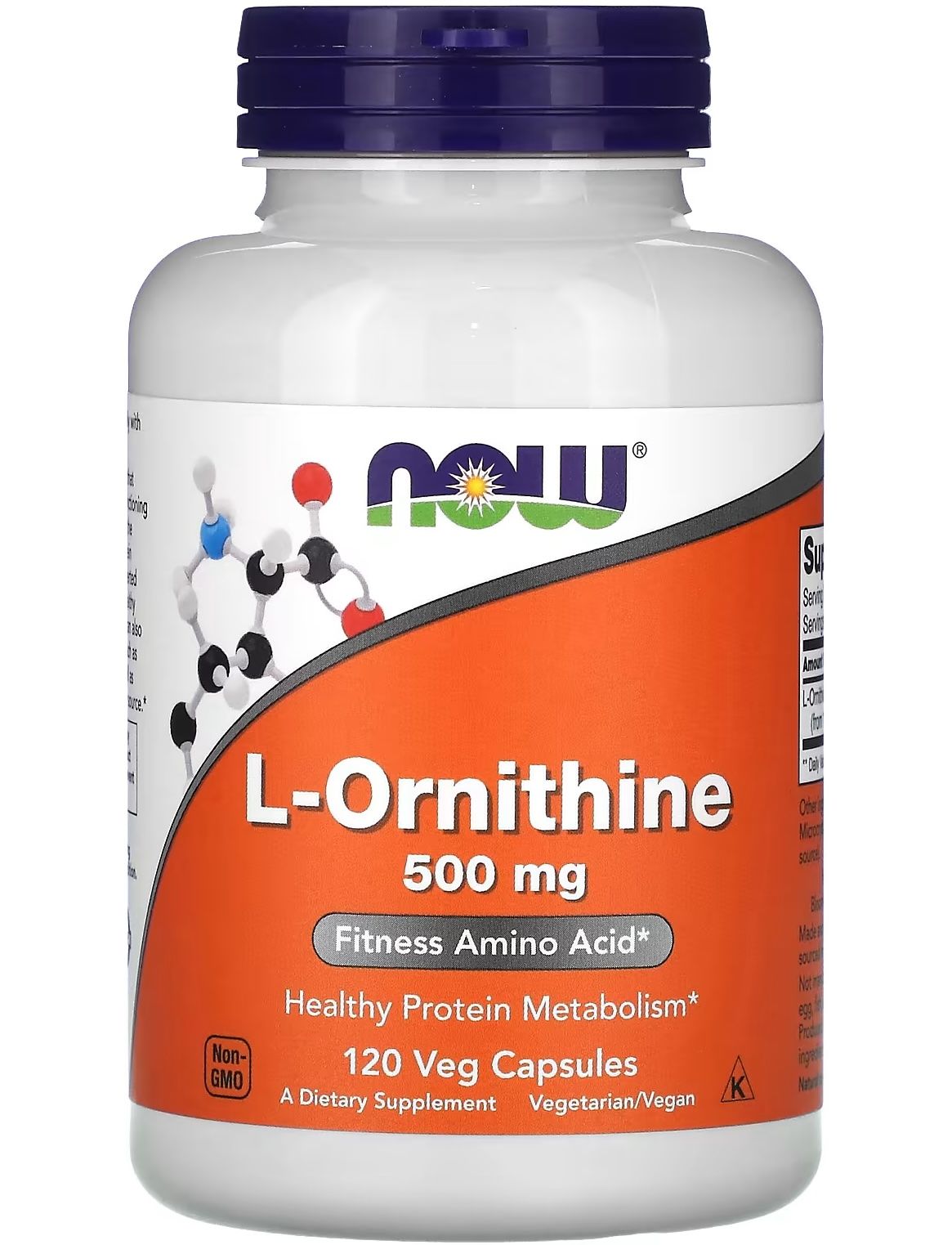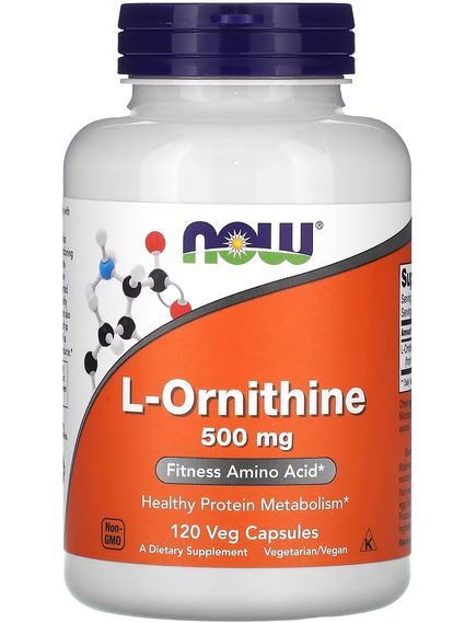 Амінокислота L-Орнітин L-Ornithine 500 мг 120 рослинних капсул від Now Foods.