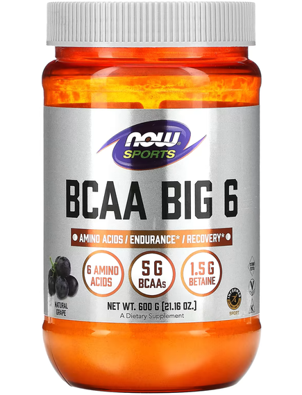 BCAA Big 6 — це вдосконалена спортивна добавка без кофеїну, розроблена для підтримки витривалості та відновлення після інтенсивних тренувань. BCAA Big 6 містить амінокислоти з розгалуженими ланцюгами (BCAA) для підтримки утримання та відновлення м’язів, а також бетаїн для підтримки балансу рідини під час тренувань. BCAA Big 6 також містить таурин, який може додатково підтримувати витривалість. BCAA Big 6 містить L-цитрулін і L-глютамін, які доповнюють цю формулу.