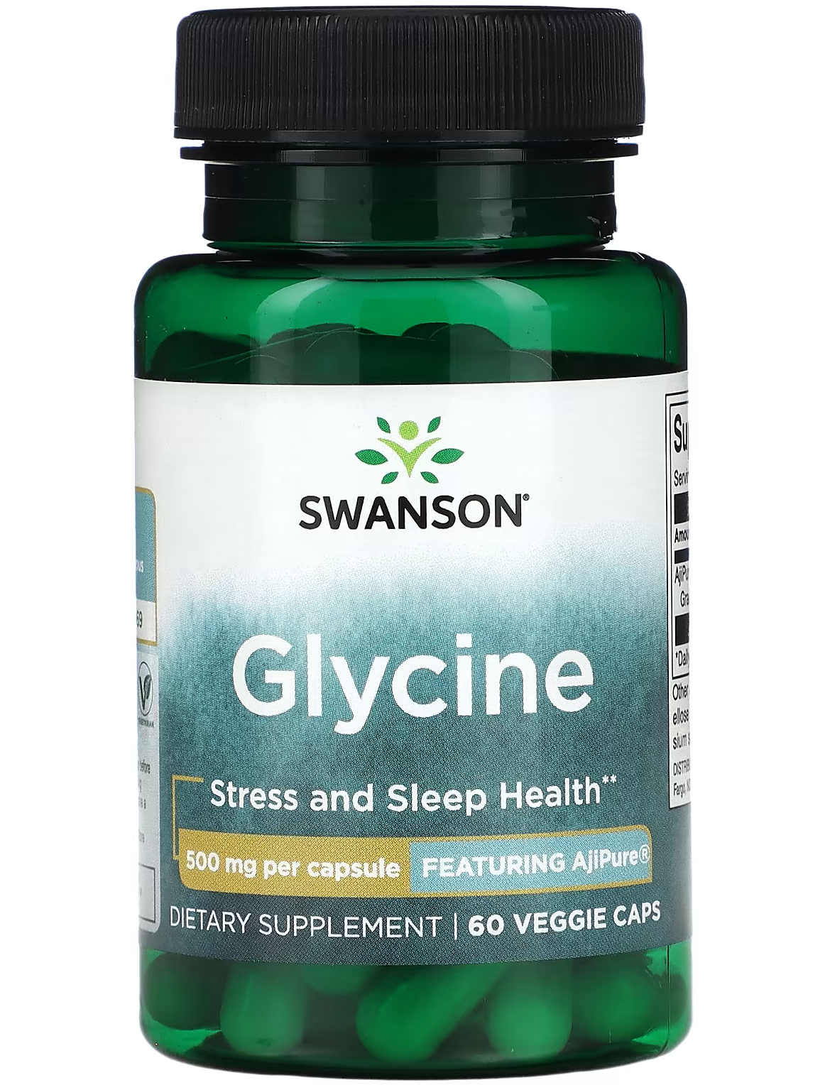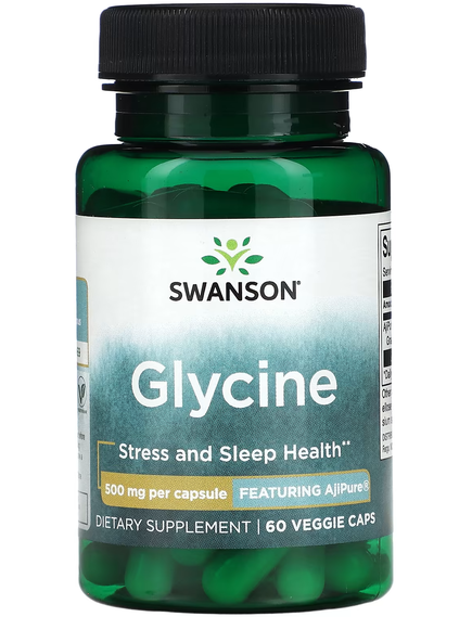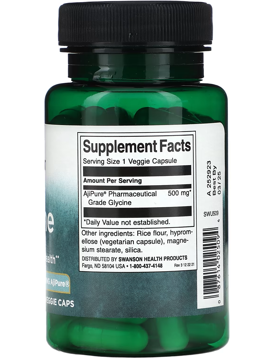 Гліцин — це найпростіша амінокислота, яка міститься в білках усіх форм життя. У дієтології гліцин використовується як компонент для парентерального та ентерального харчування. Гліцин відіграє важливу роль у синтезі білків, пептидів, пуринів, нуклеїнових кислот та інших амінокислот. Гліцин також є нейромедіатором у центральній нервовій системі. Вважається, що гліцин може бути новим антиоксидантом. Гліцин від Swanson містить 500 мг цієї важливої амінокислоти в 1 порції вегетаріанської капсули.