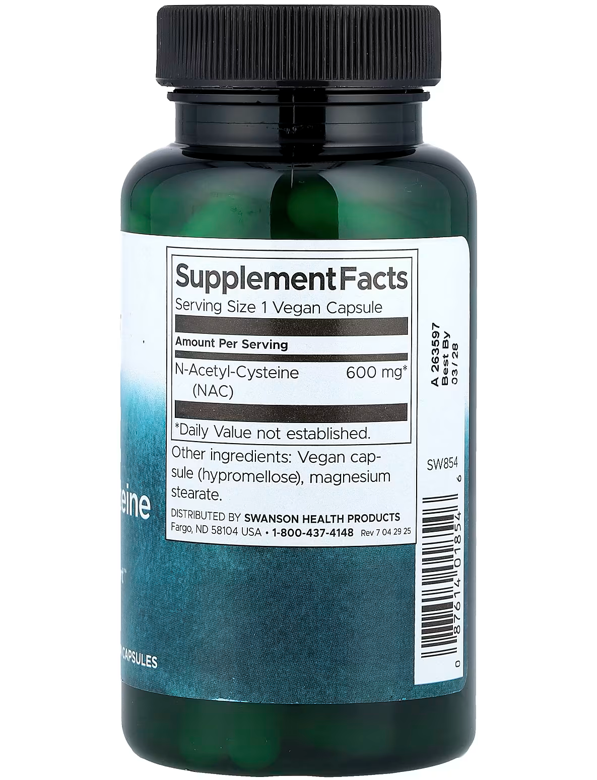 Коли вільні радикали атакують, NAC забезпечить надійний захист! Потужна антиоксидантна амінокислота NAC (N-ацетилцистеїн) від Swanson є важливою зброєю в боротьбі з вільними радикалами. Добавка містить 600 мг NAC на капсулу. NAC допомагає відновити запаси глутатіону, важливого компонента захисної системи організму. Він підтримує здоров’я печінки та багато іншого.