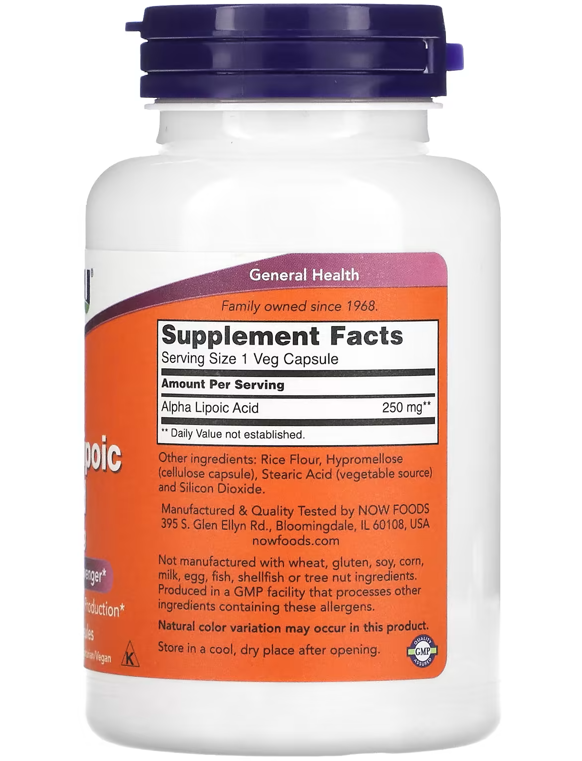 Харчова добавка. Дієтична добавка. Альфа-ліпоєва кислота 250 мг 120 веганських капсул.