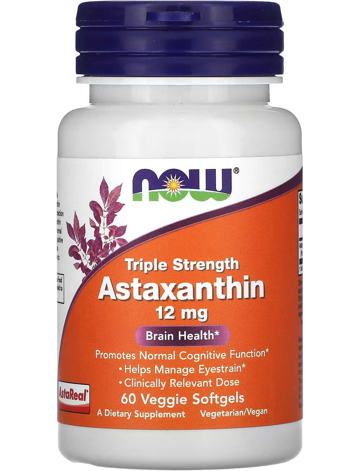 Харчова добавка. Дієтична добавка. Астаксантин Потрійної Дії 12 мг 60 веганських капсул. Здоров'я мозгу.