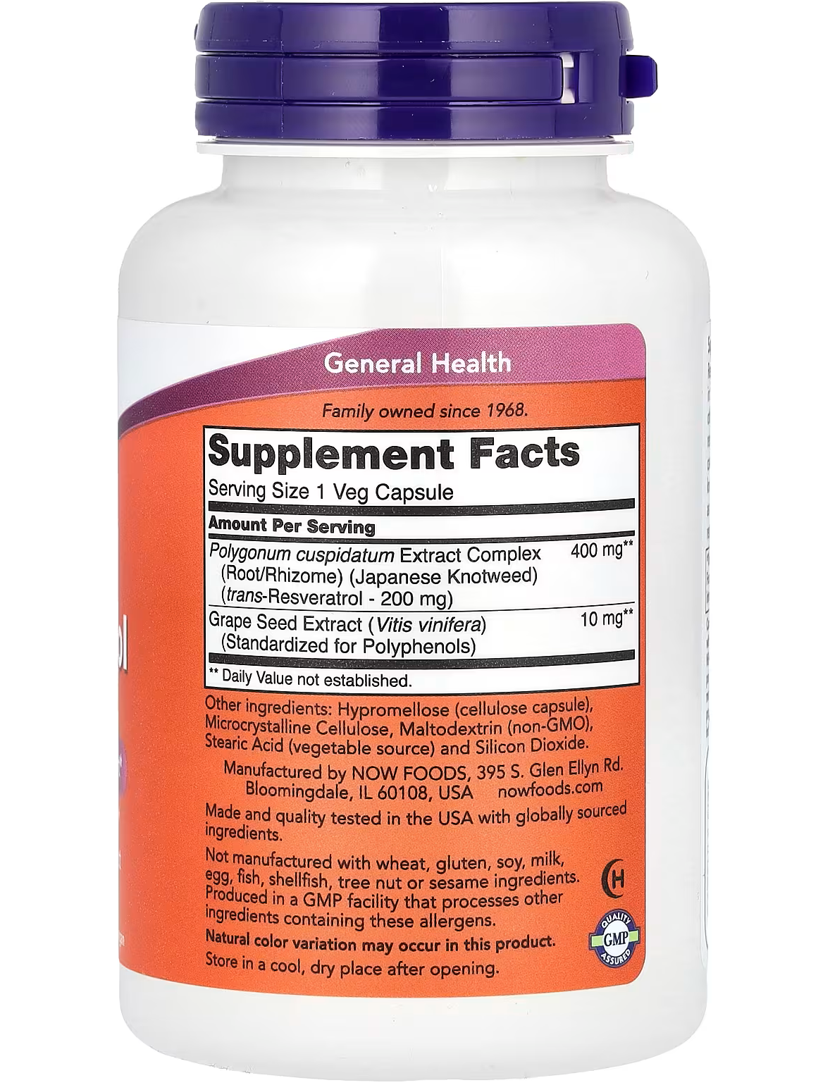 Ресвератрол — це поліфенол, який природним чином міститься в шкірці червоного винограду, деяких ягід та інших рослин. Нещодавні дослідження довели, що ресвератрол допомагає підтримувати здорову роботу серцево-судинної системи. Ресвератрол найбільш відомий своїми клітинними антивіковими властивостями, а також здатністю підтримувати здорову реакцію на біологічний стрес.