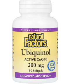 Харчова добавка. Дієтична добавка. Убихінол Активний Коензим Q10 200 мг 30 м'яких капсул. Убіхінол (активний коензим Q10) — це ефективний антиоксидант із покращеними поглинанням і біодоступністю, що особливо важливо для зрілого організму, коли природне вироблення убіхінолу...