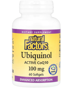 Харчова добавка. Дієтична добавка. Убихінол Активний Коензим Q10 100 мг 60 м'яких капсул. Убіхінол, активний коензим Q10 — це ефективний антиоксидант, який покращує поглинання та біодоступність, особливо для зрілого організму, коли природне вироблення убихінолу знижується....