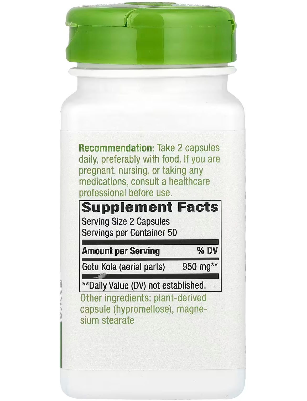 - Кількість в 1 порції: Готу кола (надземні частини) 950 мг.