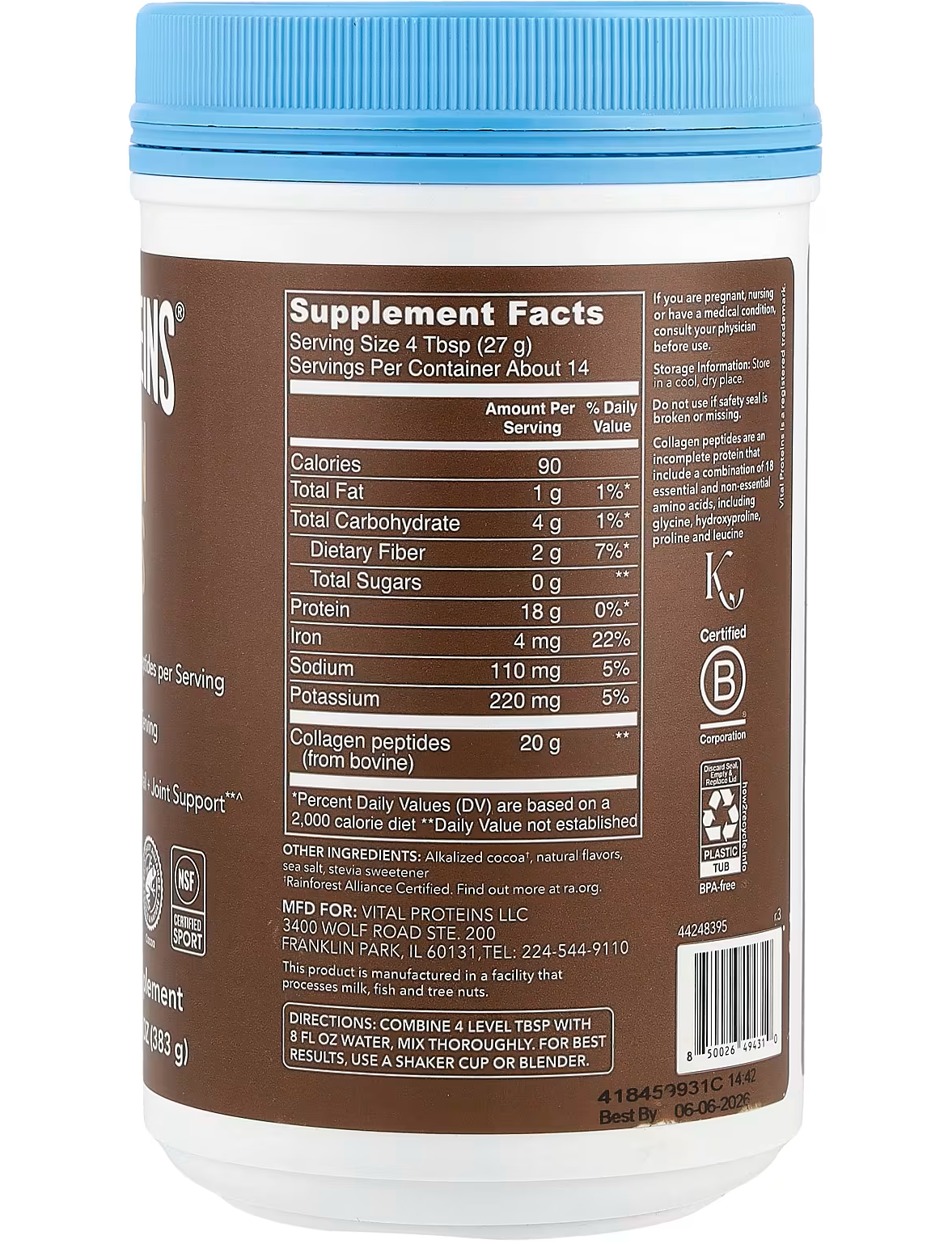 Ми додали какао, що містить сертифікат Rainforest Alliance, до наших пептидів колагену з великої рогатої худоби вільного вигулу й трав’яного відгодовування, щоб надати чудового солодкого смаку вашій воді, каві, смузі, стравам тощо!