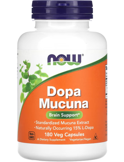 Дофамін — це нейромедіатор, який викликає задоволення й інтерес до життя. Засіб Dopa Mucuna від NOW®, у якому міститься 15 % L-дигідроксифенілаланіну (безпосередній прекурсор дофаміну), допомагає організму отримувати все необхідне для вироблення цього важливого нейромедіатора. Мукуна використовується в традиційній аюрведичній системі Індії протягом кількох тисяч років.