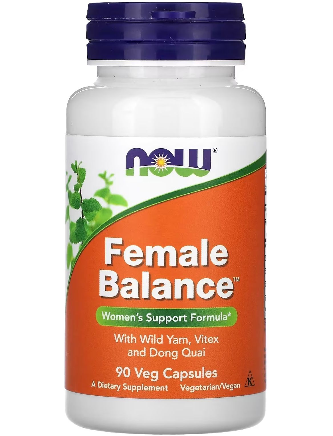 NOW® Female Balance™ — це унікальна рослинна формула підтримки для жінок. Поєднання рослинних інгредієнів з дикого ямсу, вітексу, імбиру та клопогона чорного, а також вітамін B6 і фолату для підтримки здорового жіночого балансу.