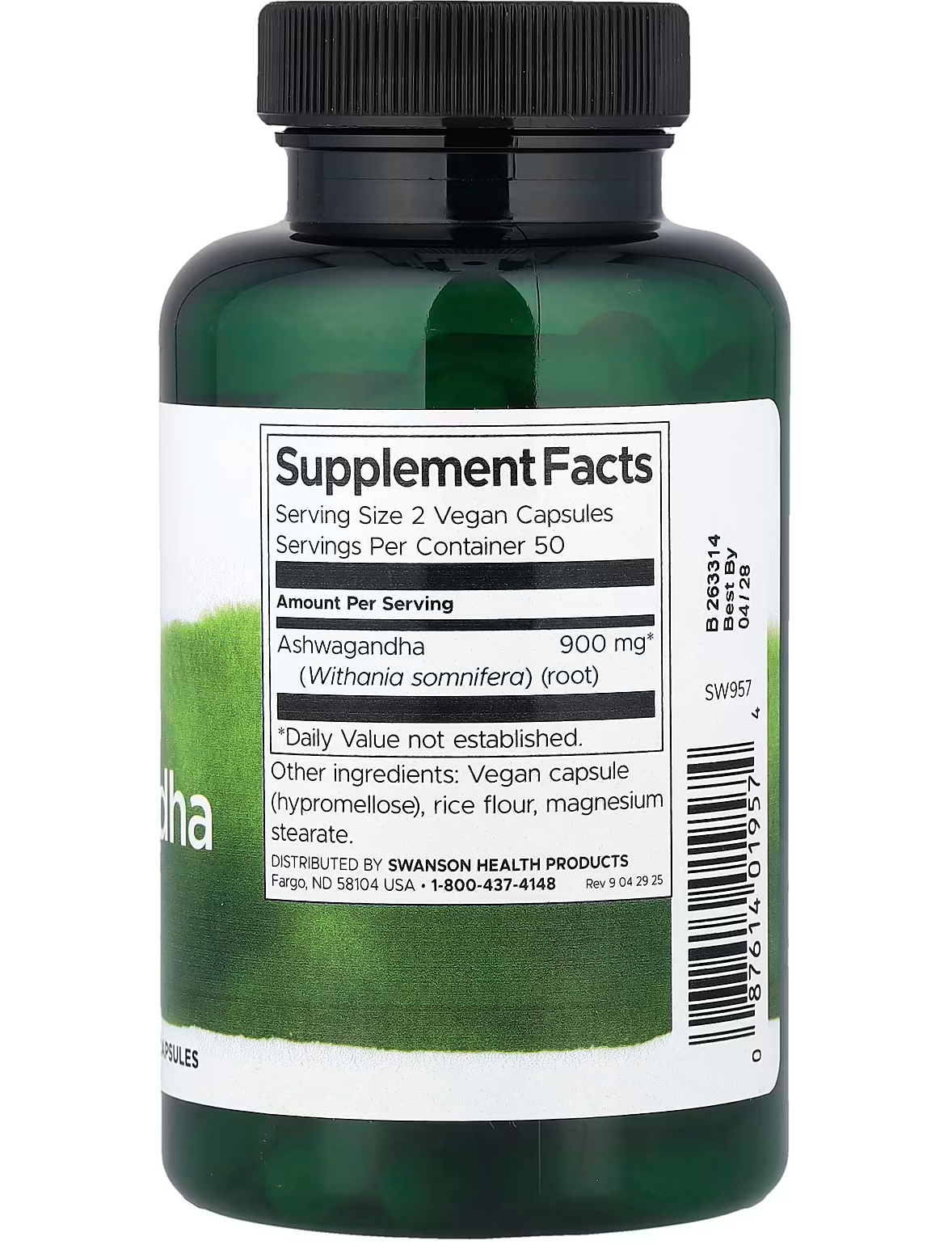- Кількість в 1 порції: Ашваганда (Withania somnifera) (корінь) 900 мг