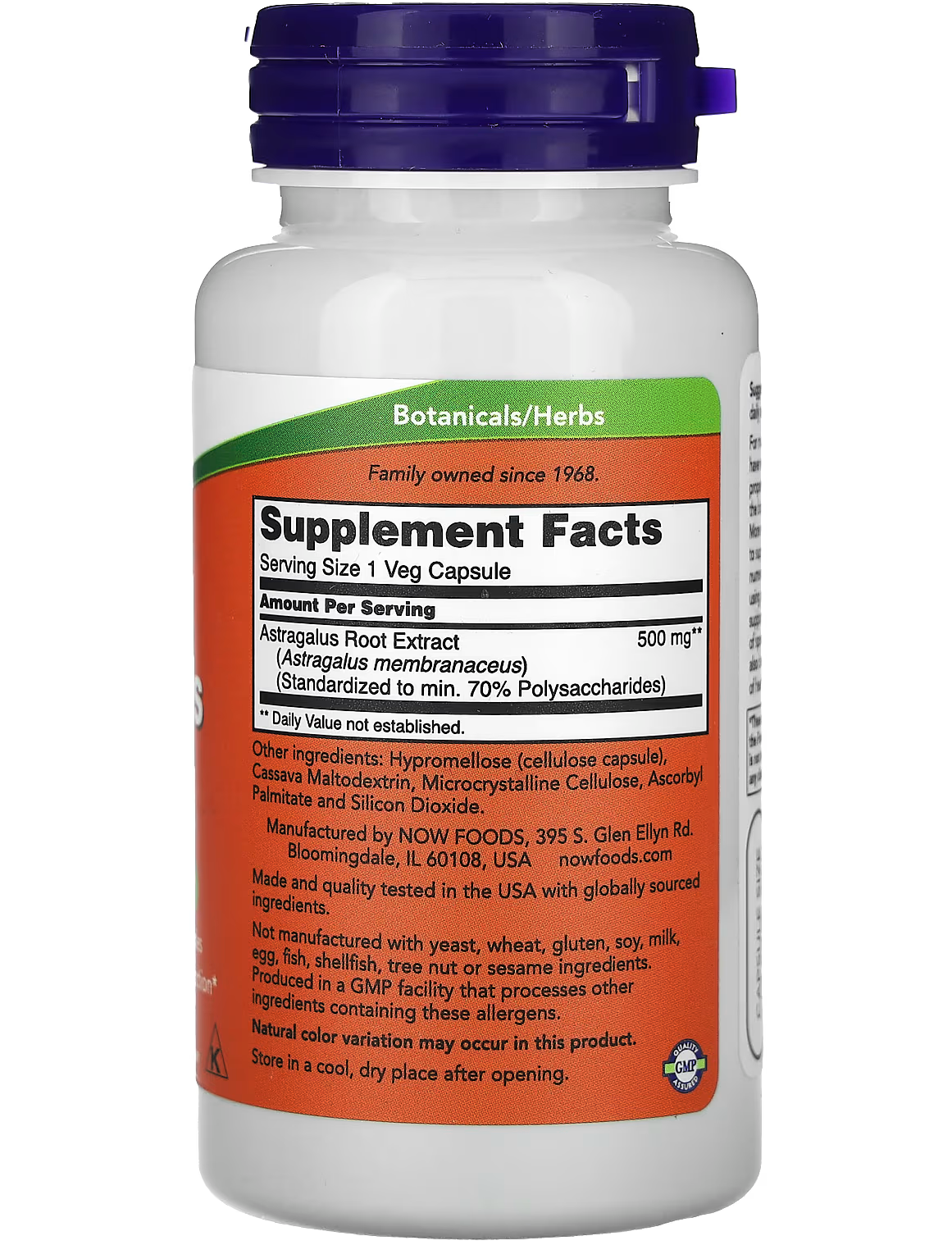 - Кількість в 1 порції: екстракт кореня астрагалу (Astragalus membranaceus) (стандартизований до вмісту не менше 70 % полісахаридів) 500 мг