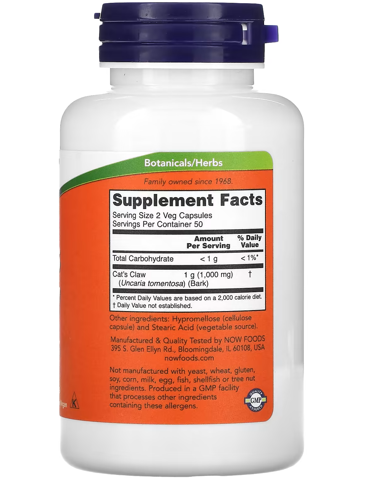 - Вміст в 1 порції: Котячий кіготь (Uncaria tomentosa) (кора) 1 г (1000 мг)