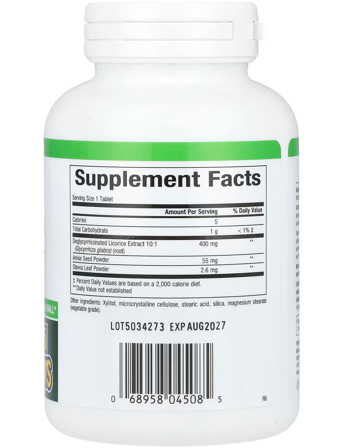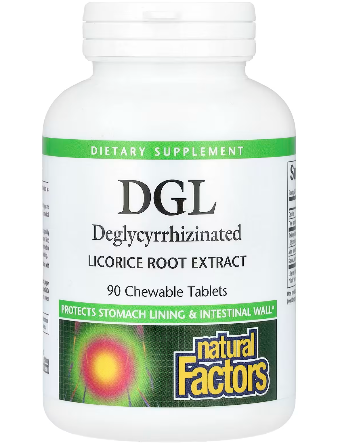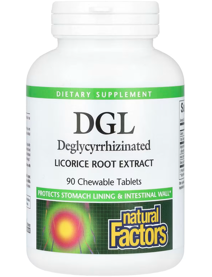 Гліциризинат солодки (DGL) — це безпечний та ефективний екстракт солодки. Він спеціально обробляється з метою видалення гліциризину, щоб уникнути потенційних побічних ефектів, як-от підвищеного артеріального тиску. DGL підтримує цілісність природної слизової оболонки шлунку та стінок кишківника. DGL стимулює фактори, які захищають слабкі місця цих тканин.