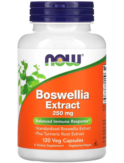 Екстракт босвелії NOW® — це стандартизований екстракт босвелії (Boswellia serrata), також відомої як ладан, смоляна рослина, що протягом століть використовується традиційними аюрведичними травниками. У ході наукових досліджень було виявлено, що біоактивні компоненти босвелії, босвелієві кислоти, впливають на ключові ферменти, що беруть участь у підтримці здоров’я тканин. За допомогою цих механізмів босвелія може допомогти підтримувати збалансовану реакцію імунної системи на нормальний внутрішній метаболічний стрес, а також виклики повсякденного життя.