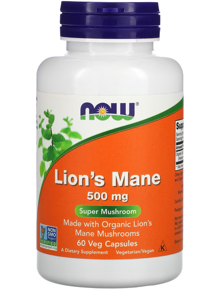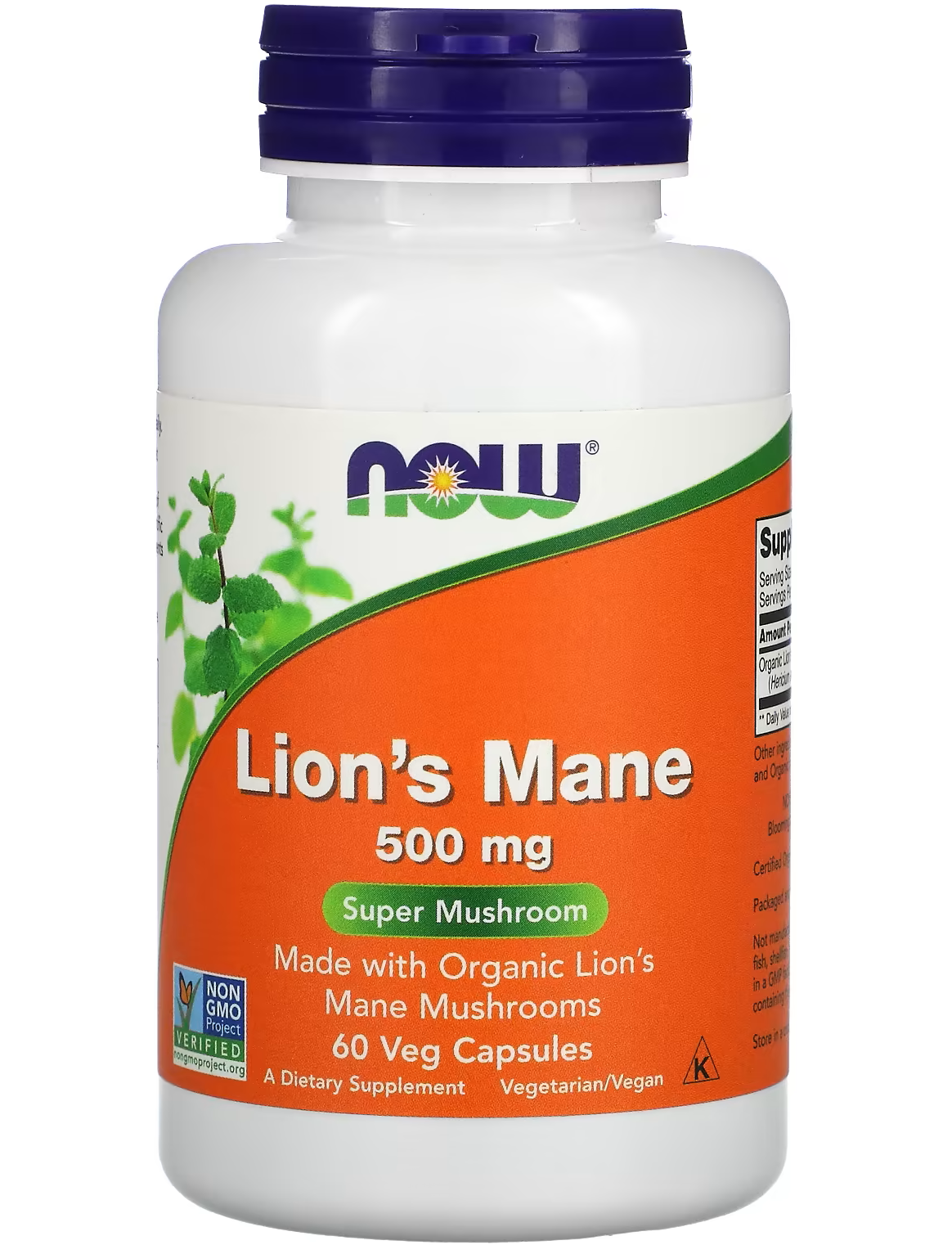 Добавка їжовика гребінчастого від NOW® містить плодові тіла гриба, збагачені природними бета-глюканами.