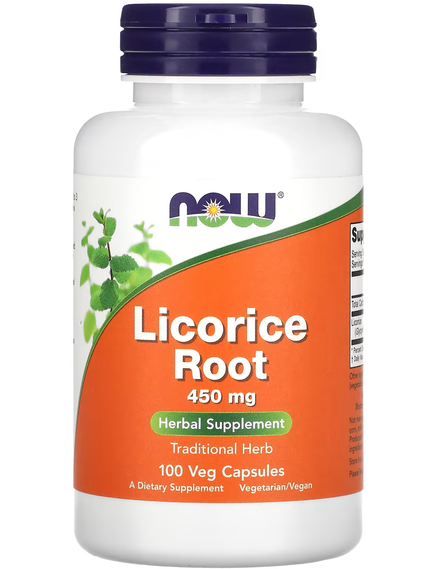 Харчова добавка. Дієтична добавка. Now Foods Корінь Солодки 450 мг 100 веганських капсул.