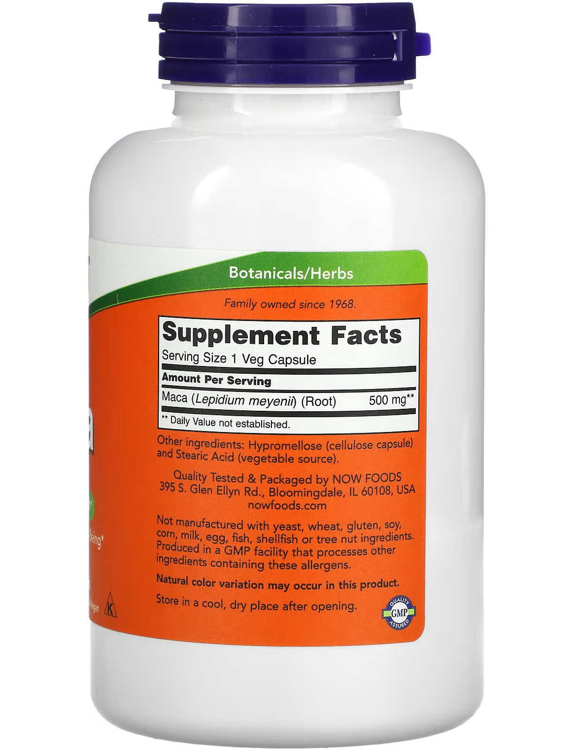 - Кількість в 1 порції: Мака (Lepidium meyenii) (корінь) 500 мг