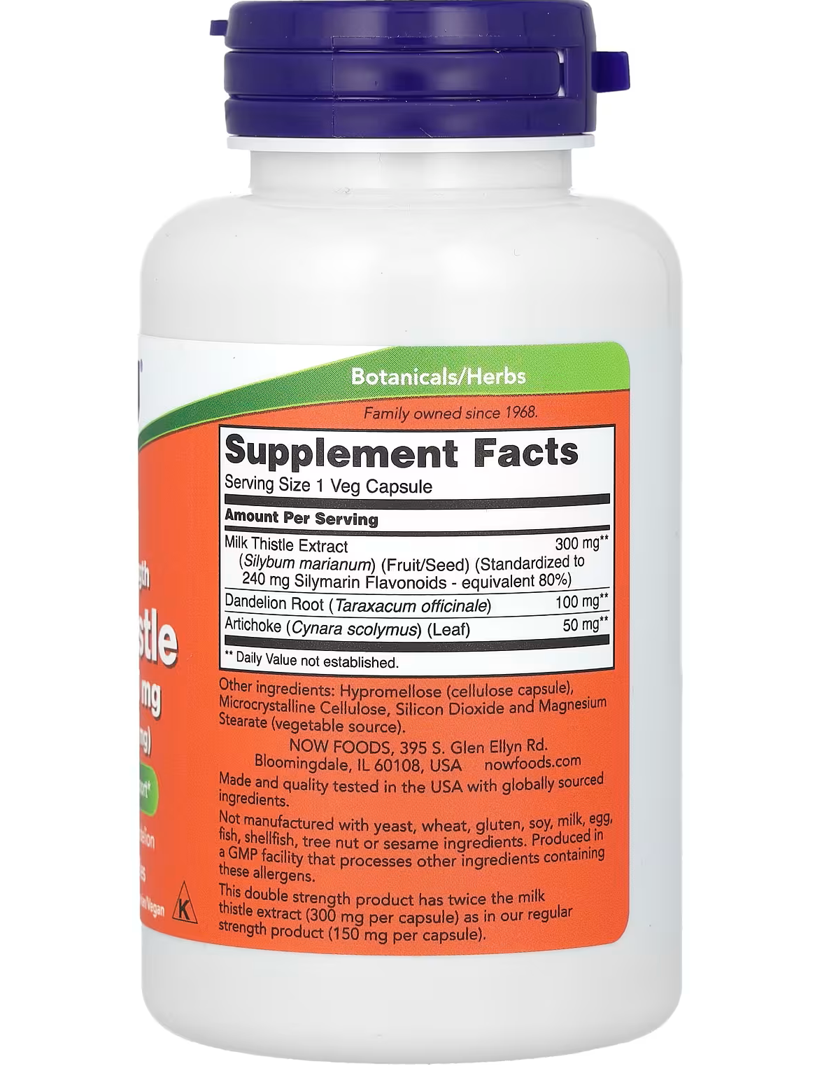 Силімарин подвійної концентрації від NOW® містить удвічі більше екстракту розторопші (300 мг на капсулу), ніж наш продукт звичайної концентрації (150 мг на капсулу).