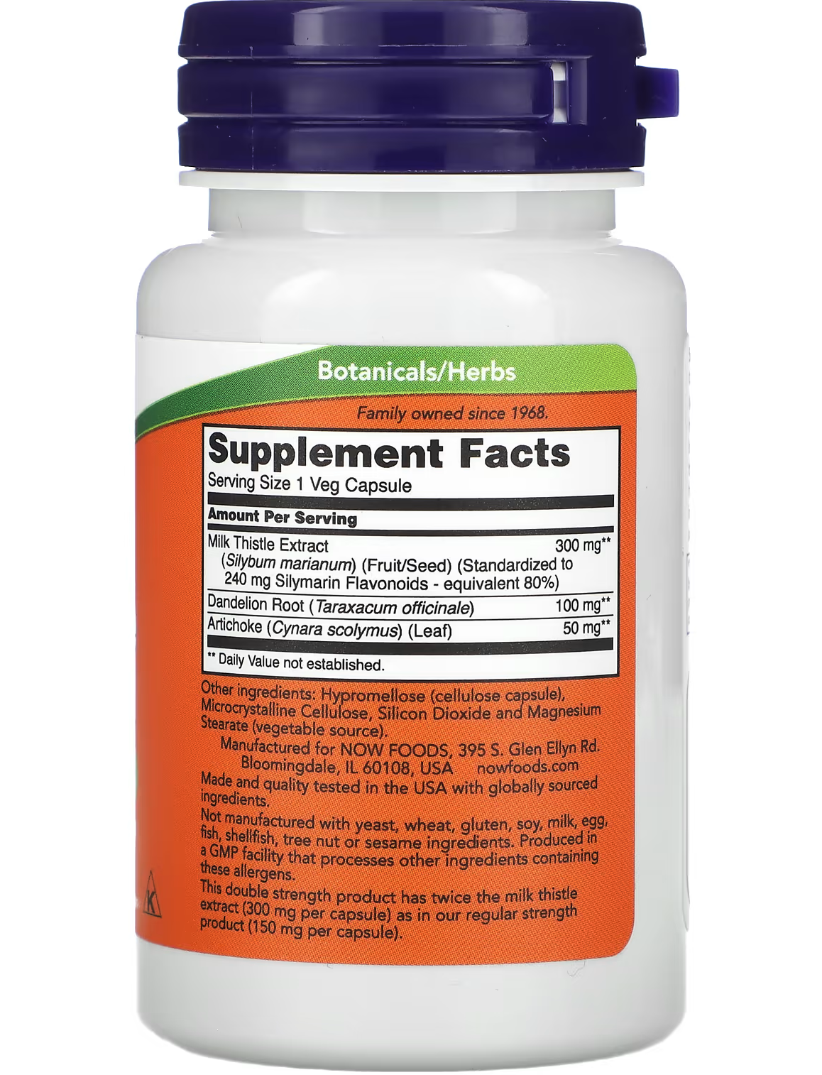Силімарин подвійної концентрації від NOW® містить удвічі більше екстракту розторопші (300 мг на капсулу), ніж наш продукт звичайної концентрації (150 мг на капсулу).