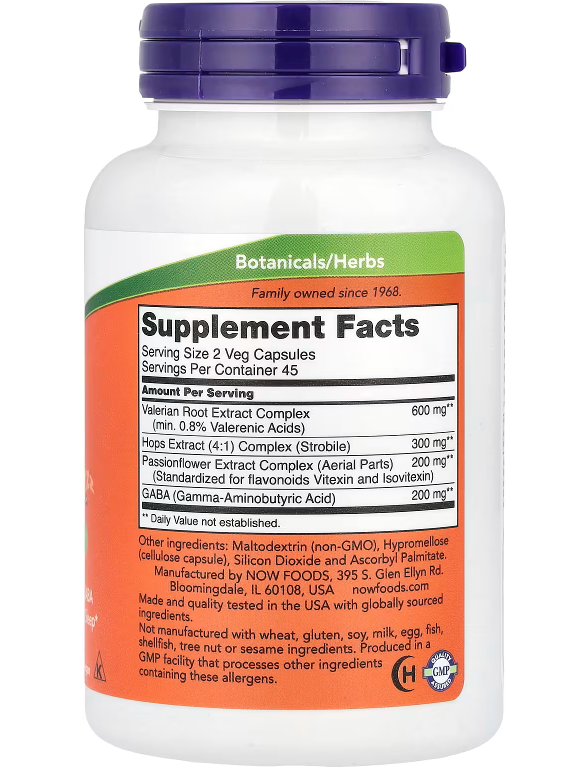 NOW® Sleep — це поєднання інгредієнтів, розроблене для того, щоб допомогти вам заспокоїти розум і розслабити тіло, і ви могли природним чином поринути в спокійний сон. Добавка NOW® Sleep містить валеріану та хміль — дві рослини, які традиційно використовувалися для заспокоєння та підтримки здорового сну, що допомагає відновити сили. ГАМК — це нейромедіатор, який зазвичай виробляється в мозку, а його функція — полегшення нервового напруження. Таким чином, NOW® Sleep розслаблює нервову систему, допомагаючи насолоджуватися спокійною ніччю та прокидатися бадьорими та сповненими сил вранці.