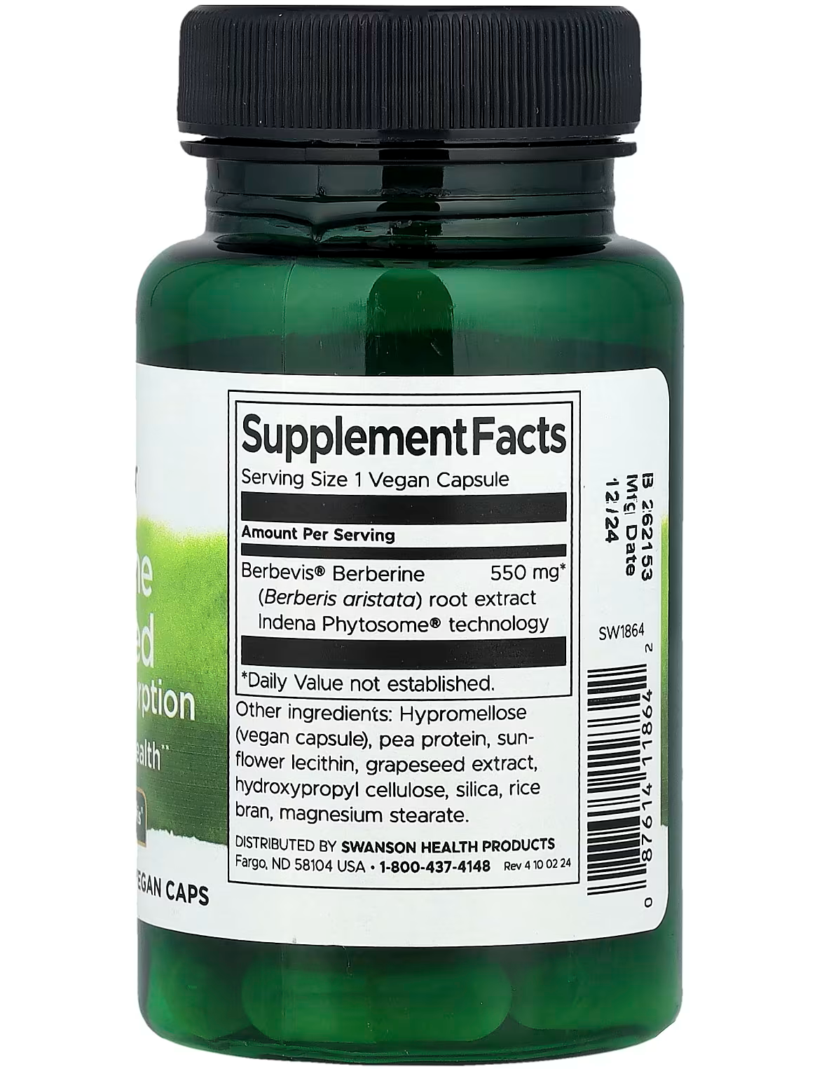 - Кількість в 1 порції: Екстракт берберинуBerbevis® (Berberis aristata), екстракт кореня технологія IndenaPhytosome®