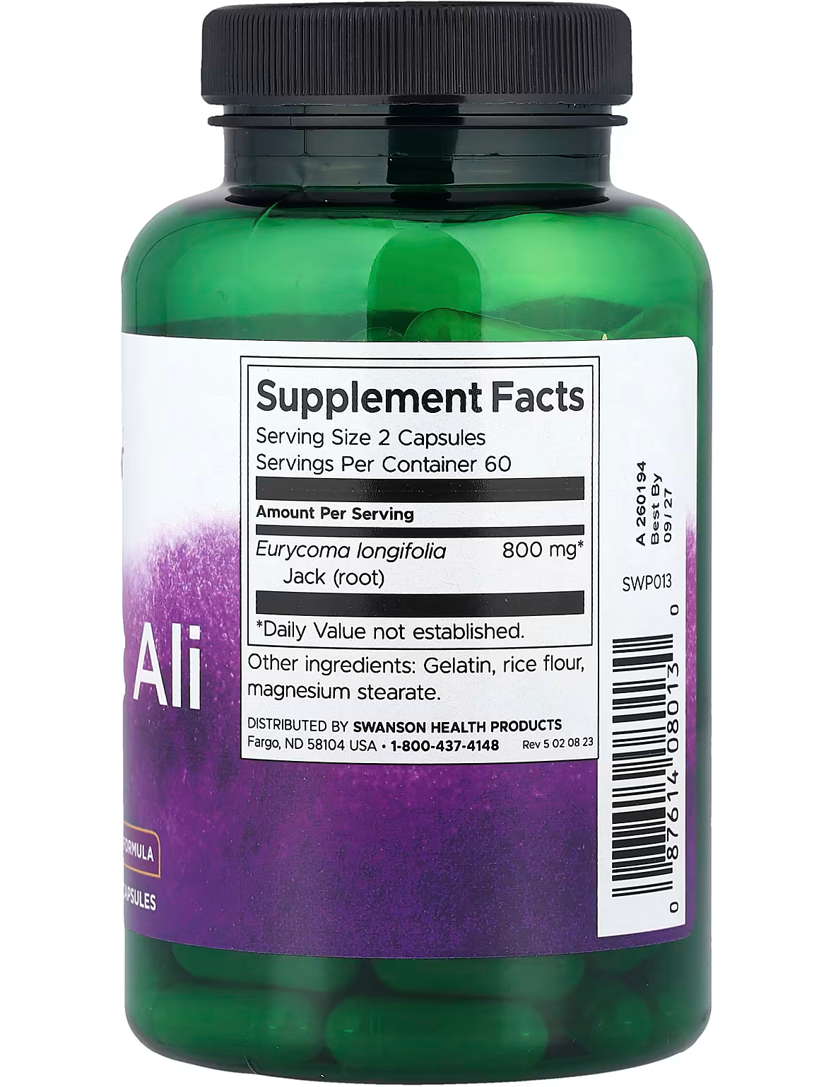- Кількість в 1 порції: Eurycoma longifolia Jack (корінь) 400 мг в 1 капсулі