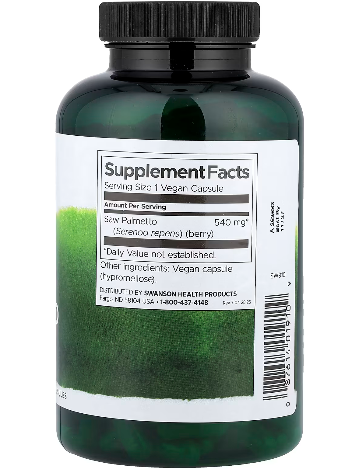 - Кількість в 1 порції: Цілі ягоди пальми Серп 540 мг