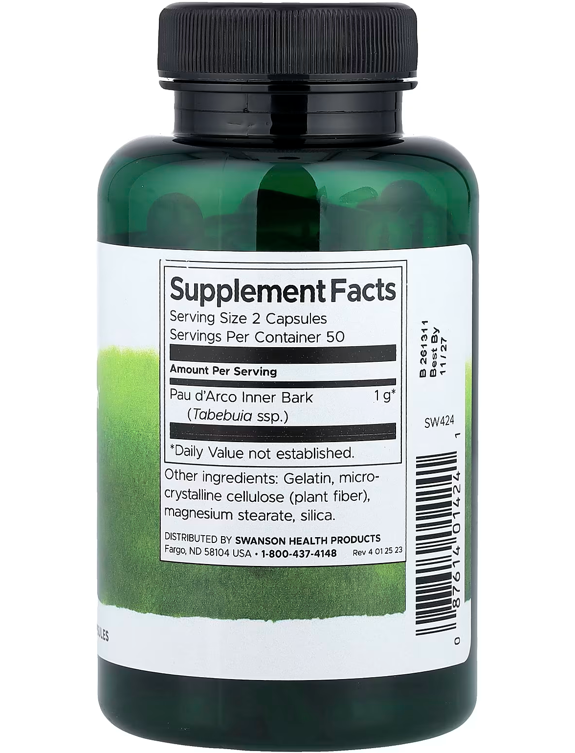 - Кількість в 1 порції: Внутрішній шар кори мурашиного дерева (Tabebuia ssp.) 500 мг в 1 капсулі