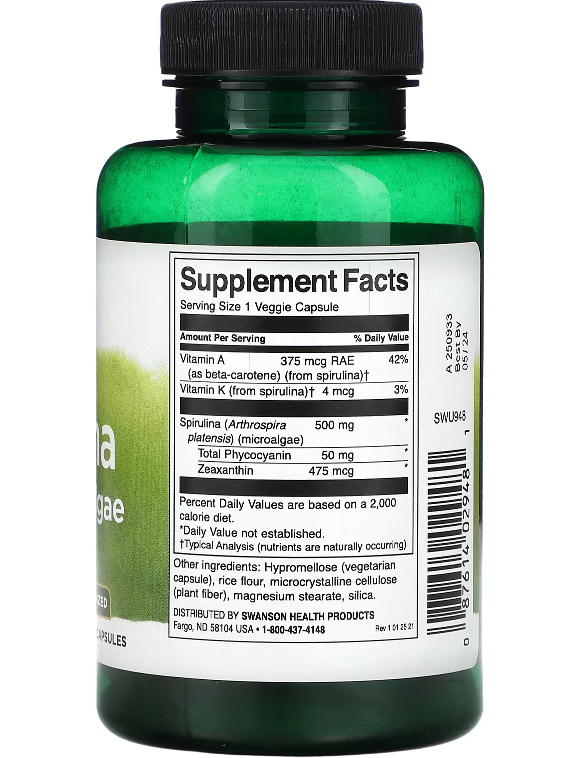 Спіруліна, також відома як синьо-зелені водорості, широко використовується для зміцнення здоров’я. Проте продукти дуже різняться. Стандартизована спіруліна Swanson змінює все. Запатентована спіруліна в цій формулі містить 10 % фікоціаніну, одного з найактивніших компонентів водоростей. Ця добавка зі спіруліною має потенціал для підтримки імунної системи, не схожий на будь-який інший засіб зі спіруліною.