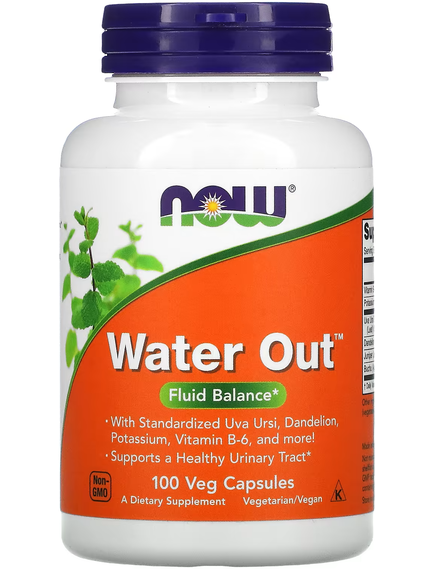 Засіб Water Out™ від NOW® — це суміш трав і поживних речовин, що доповнюють одне одного, розроблена для підтримки нормальної роботи сечовивідних шляхів і правильного балансу рідини в організмі. До складу Water Out™ входять кульбаба, яка традиційно використовувалася для підтримання водного балансу, а також мучниця звичайна та ялівець, які історично застосовувалися травниками для підтримки здоров’я сечовивідних шляхів. У поєднанні з поживними компонентами вітаміном B6 і калієм Water Out™ допомагає підтримувати нормальну роботу сечовивідних шляхів.
