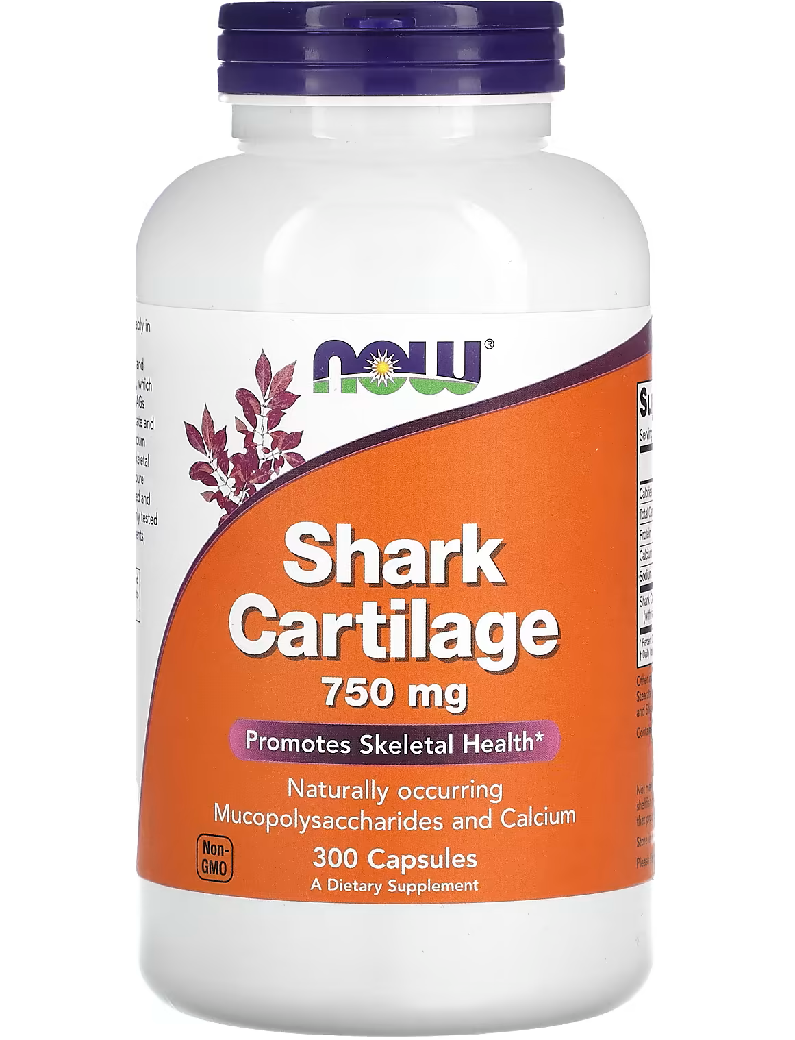 Акулячий хрящ є чудовим джерелом кальцію та містить мукополісахариди природного походження, відомі як глікозаміноглікани (ГАГ). ГАГ — це компоненти хрящової тканини, які змащують суглоби та захищають їх від ураження. Завдяки високому вмісту кальцію акулячий хрящ також допомагає підтримувати здоров’я скелетної системи. Акулячий хрящ Now отримують із чистих сублімованих хребтів акул, які збирають і використовують для харчових цілей. Цей продукт ретельно перевірено на наявність важливих компонентів, отриманих від акул. Не містить розчинників, відбілювачів або хімічних речовин для обробки.