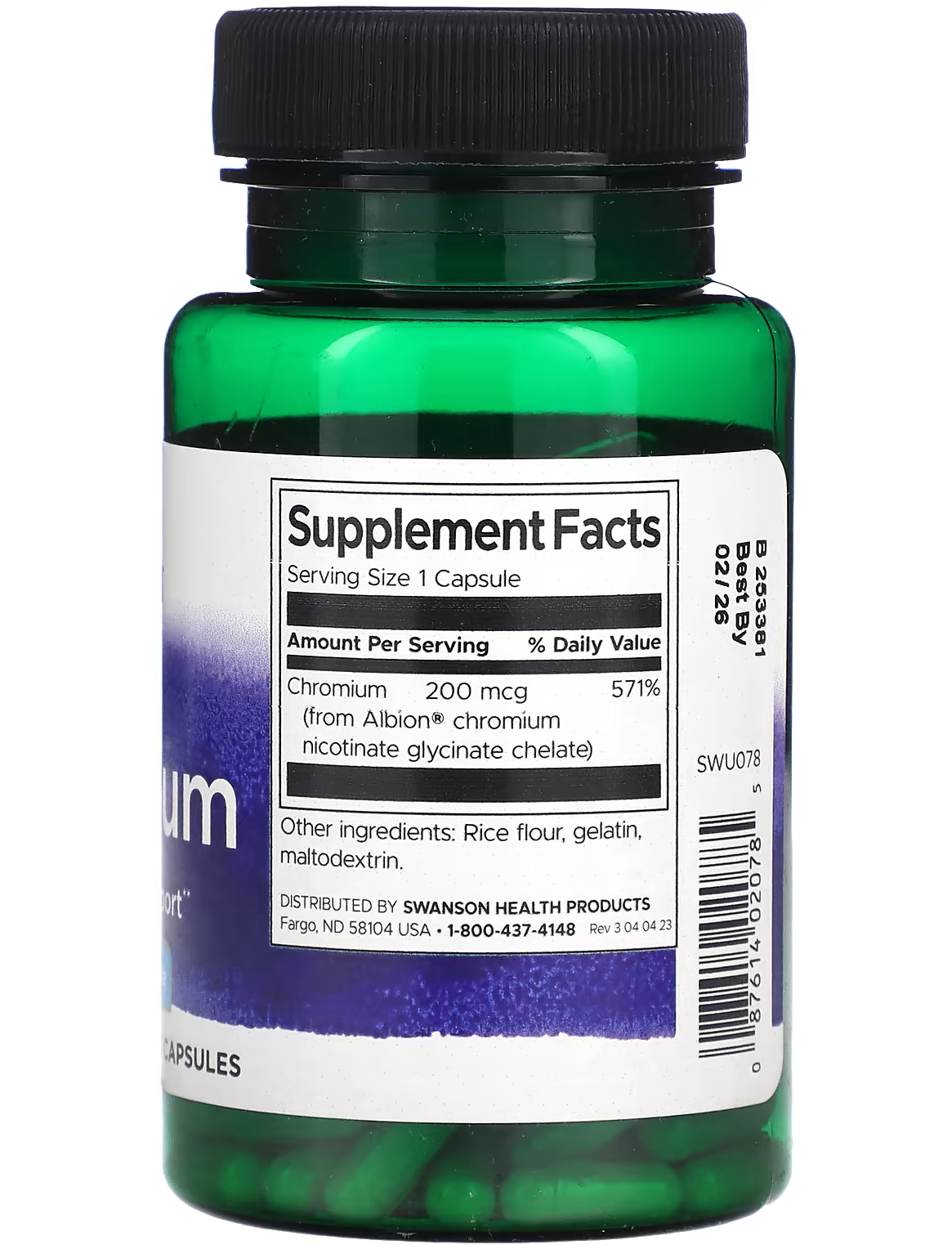 - Кількість в 1 порції: Хром (з хелату нікотинату гліцинату хрому Albion®) 200 мкг