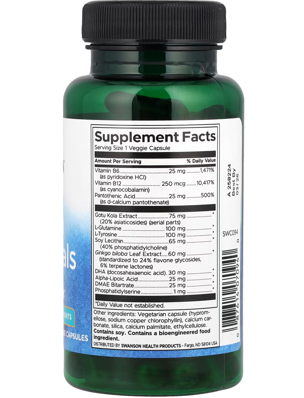 Шукаєте ідеального помічника для психічного здоров’я? Не шукайте далі! Добавка Swanson Condition Specific Brain Essentials — це набір засобів, які допомагають підтримувати здорову пам’ять і гострий розум. Він поєднує в собі такі трави з гарантованою ефективністю, як-от гінкго білоба та готу кола, поживні омега-3 жирні кислоти (ДГК), фосфоліпідні поживні речовини (фосфатидилсерин і фосфатидилхолін), антиоксидантний захист завдяки альфа-ліпоєвій кислоті та вітаміну Е тощо.
