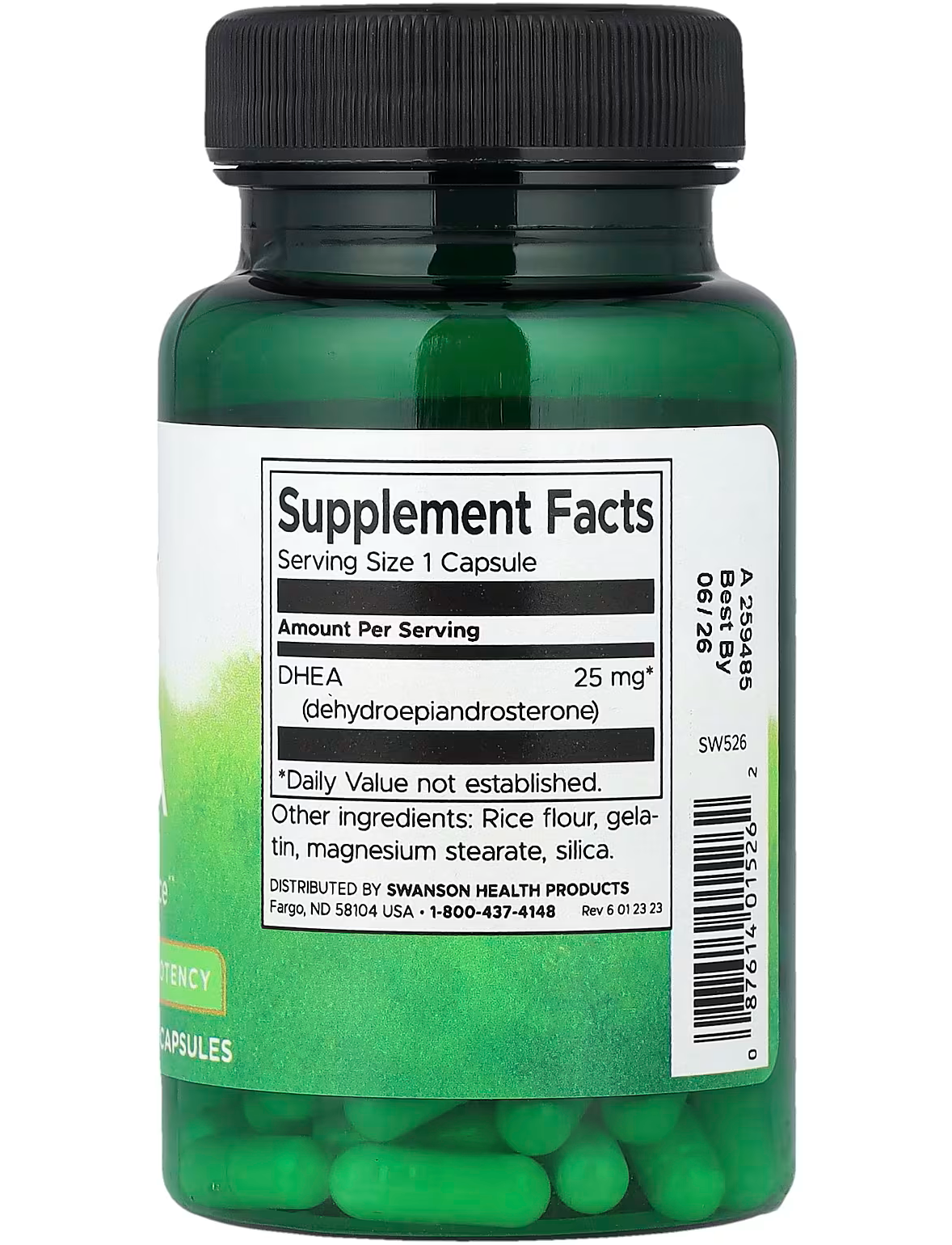 ДГЕА від Swanson — це прекурсор естрогену й тестостерону, який має широкий спектр переваг як для чоловіків, так і для жінок. ДГЕА підтримує здоров’я кісток, сексуальну енергію та загальний життєвий тонус. Кожна капсула ДГЕА від Swanson містить 25 мг цього гормону, що витримує старіння. Відкрийте для себе бажання жити заново за допомогою гормональної підтримки ДГЕА!