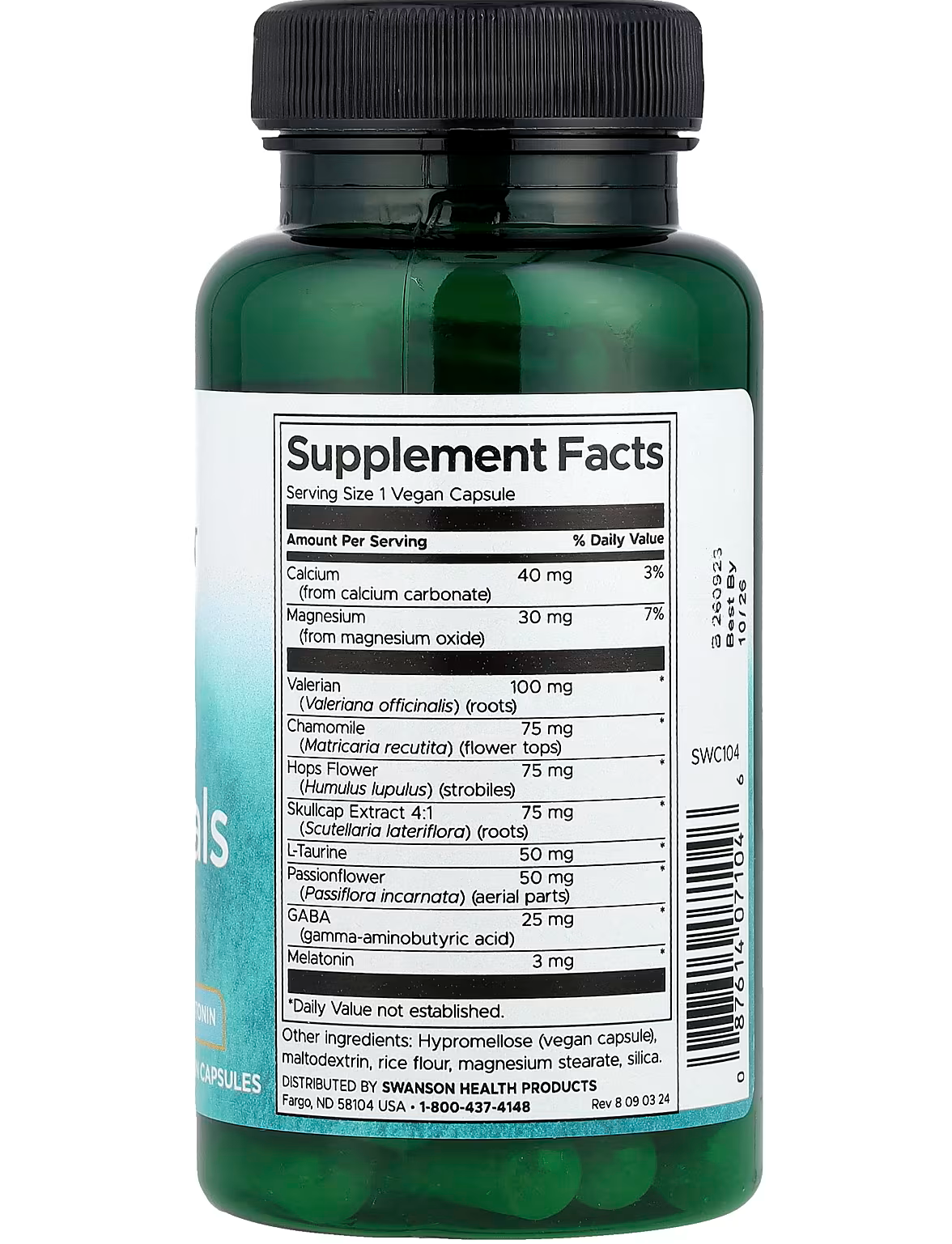 - Рекомендації із застосування: Як дієтичну добавку приймати одну веганську капсулу перед сном, запиваючи 240 мл (8 унціями) води.