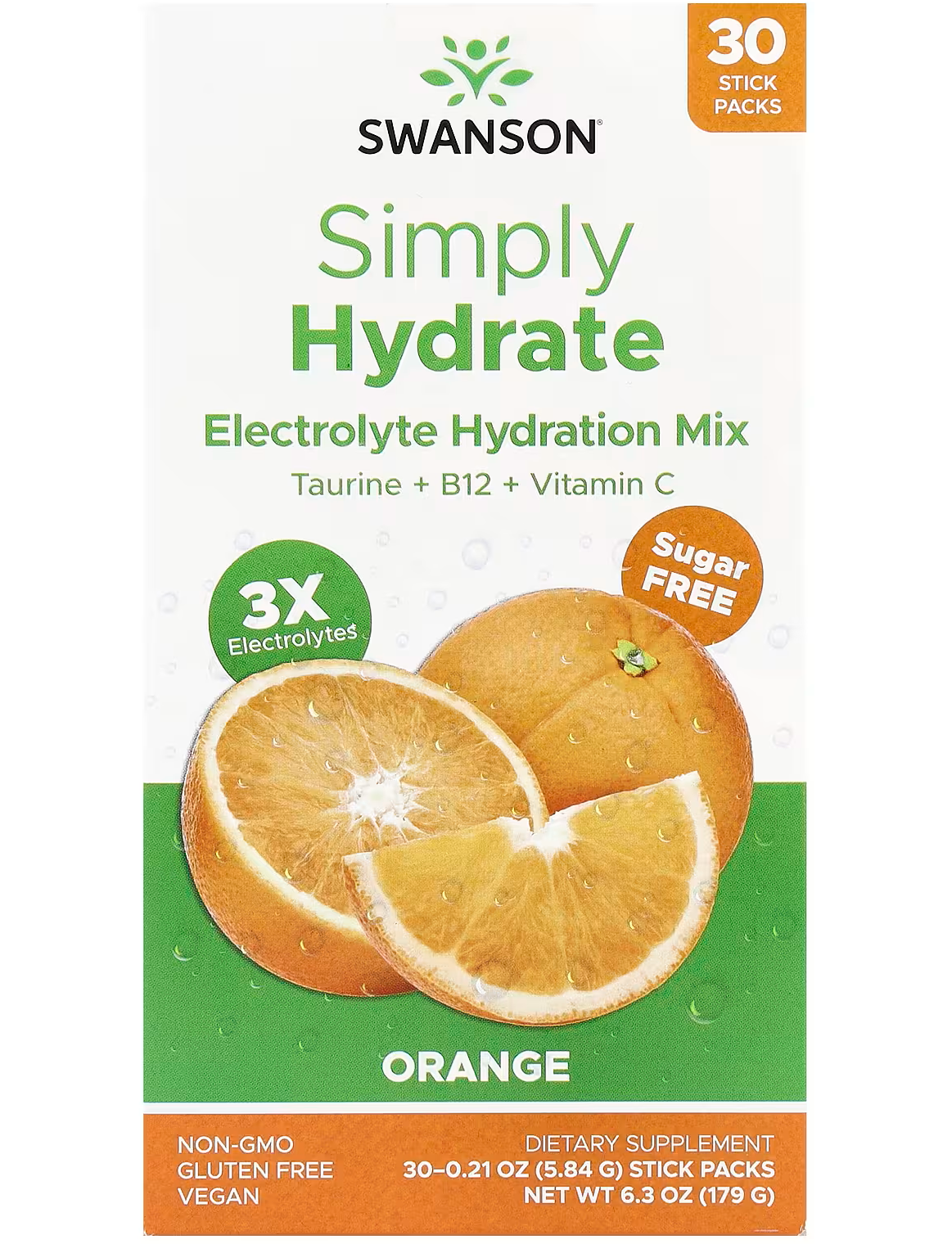 Харчова добавка. Дієтична добавка. Simply Hydrate Суміш для зволоження з електролітами з смаком апельсину 30 пакетиків-стіків по 5,84 г.