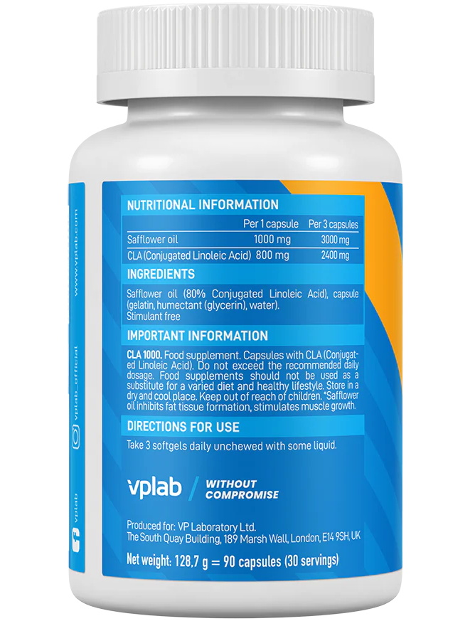 CLA 1000 від VPLAB – це натуральна добавка, отримана з насіння сафлору, яка підтримує управління вагою, здоровий метаболізм і розвиток м’язів. Продукт не містить стимуляторів і випускається у 90 легкоковтальних м’яких капсулах, забезпечуючи чистий і природний спосіб досягнення фітнес-цілей та підтримки здоров’я.