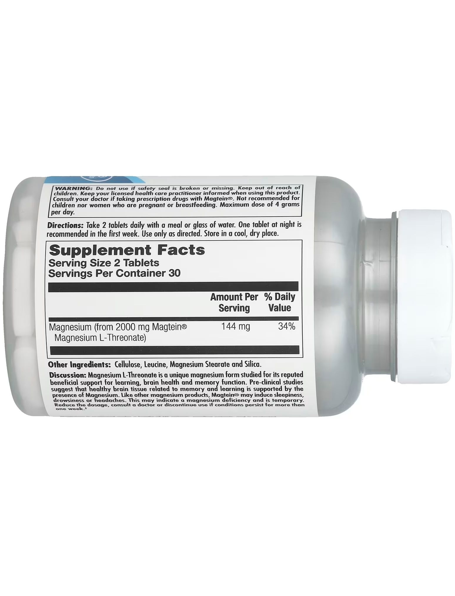 Не використовуйте продукт, якщо захисна плівка пошкоджена або відсутня. Зберігати в недоступному для дітей місці. Перед використанням цього продукту слід проконсультуватися з медичним працівником. Якщо ви приймаєте рецептурні препарати, що містять Magtein, проконсультуйтеся з лікарем. Не рекомендується приймати цей продукт дітям, а також вагітним і годуючим жінкам. Максимальна доза складає 4 грами на день.