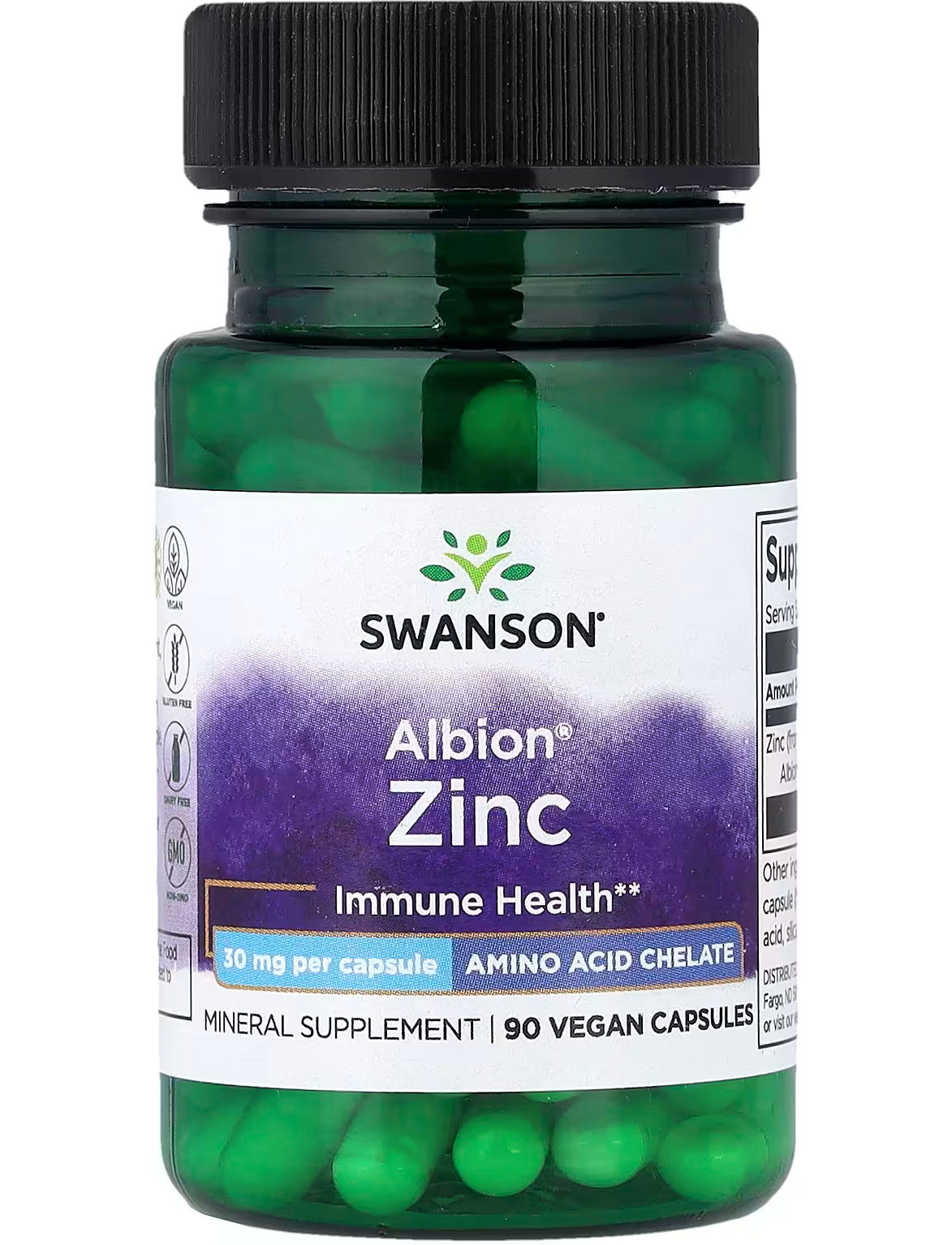 Хелатний цинк від Swanson Albion підтримує імунну систему, сприяє здоров’ю простати та необхідний для гарного зору. Наші капсули містять 30 мг амінокислотного хелатного цинку Albion.