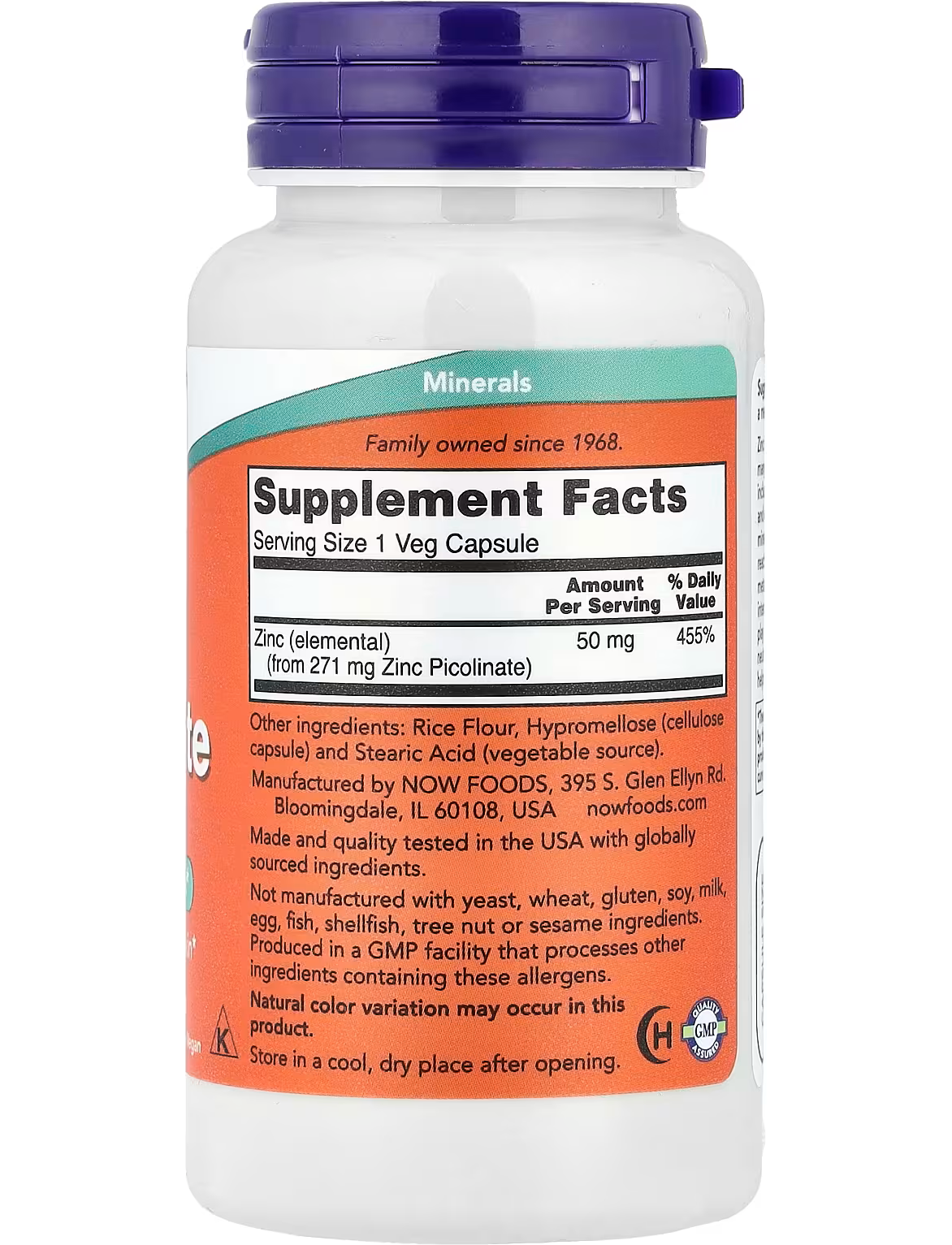 - Кількість в 1 порції: Цинк (від 270 мг піколінату цинку) 50 мг