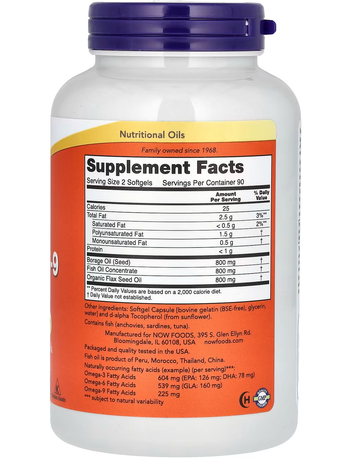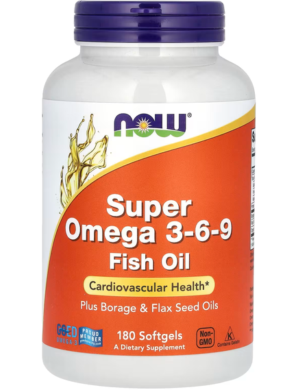 Суперомега 3-6-9 — це суміш риб’ячого жиру, олій із насіння огірочника та льону. Ця комбінація добре відомих поживних олій і жирів має унікальний баланс незамінних жирних кислот омега-3 й омега-6 із додаванням омега-9 — замінної, але корисної жирної кислоти. Жирні кислоти омега-3 — альфа-ліноленова кислота, ЕПК й ДГК, а також омега-6 — ГЛК (гамма-ліноленова кислота) необхідні для здоров’я шкіри, нормального імунного балансу та правильної роботи нервової системи.