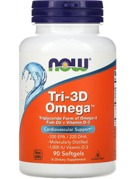 Харчова добавка. Дієтична добавка. Tri-3D Omega 330 мг ЕПК 220 мг ДГК 90 м'яких капсул.